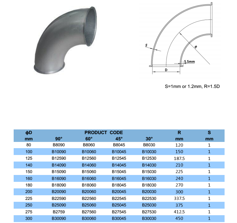 Elbow | Angle | Angle | Angle | Angle | Angle |